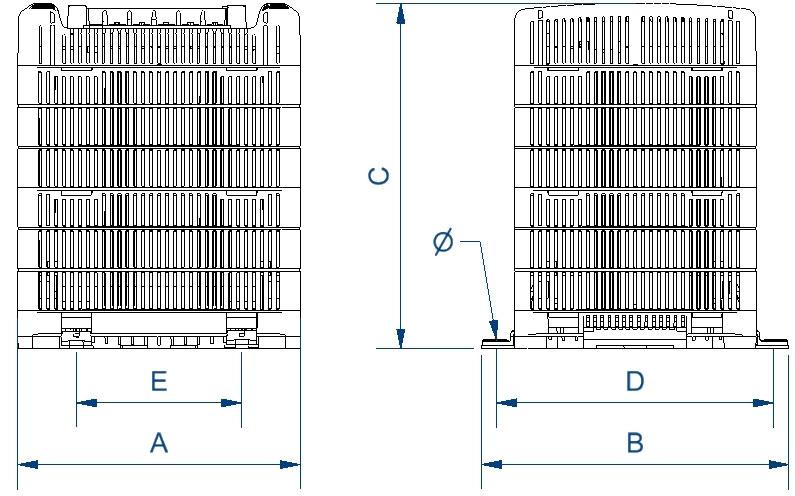 Dimensions (AxBxCxDxE): 214x225x284x195x175 mm 7Ø