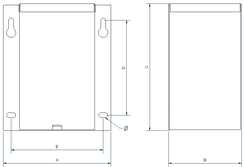 Dimensions (AxBxCxDxE): 140x95x165x123x120 mm 6Ø