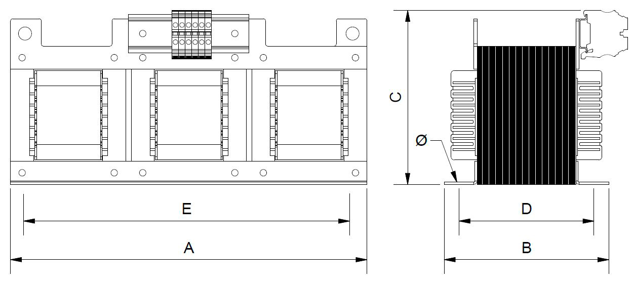 The TMTX is the IP00 model, available also with IP20 enclosure or cast resin.