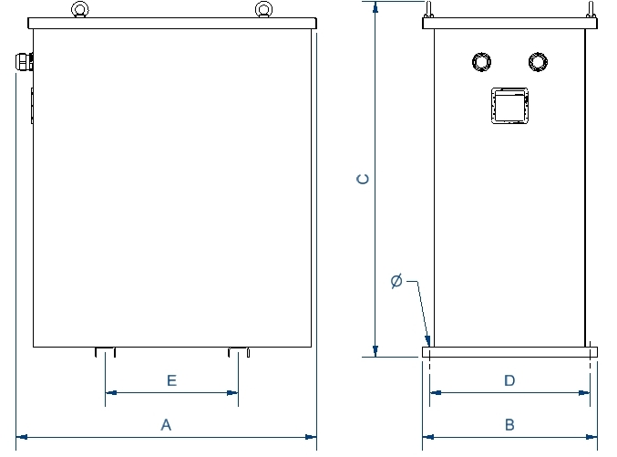 Includes cable glands and silent blocks. It also includes stainless steel lifting eyebolts from 8 kVA